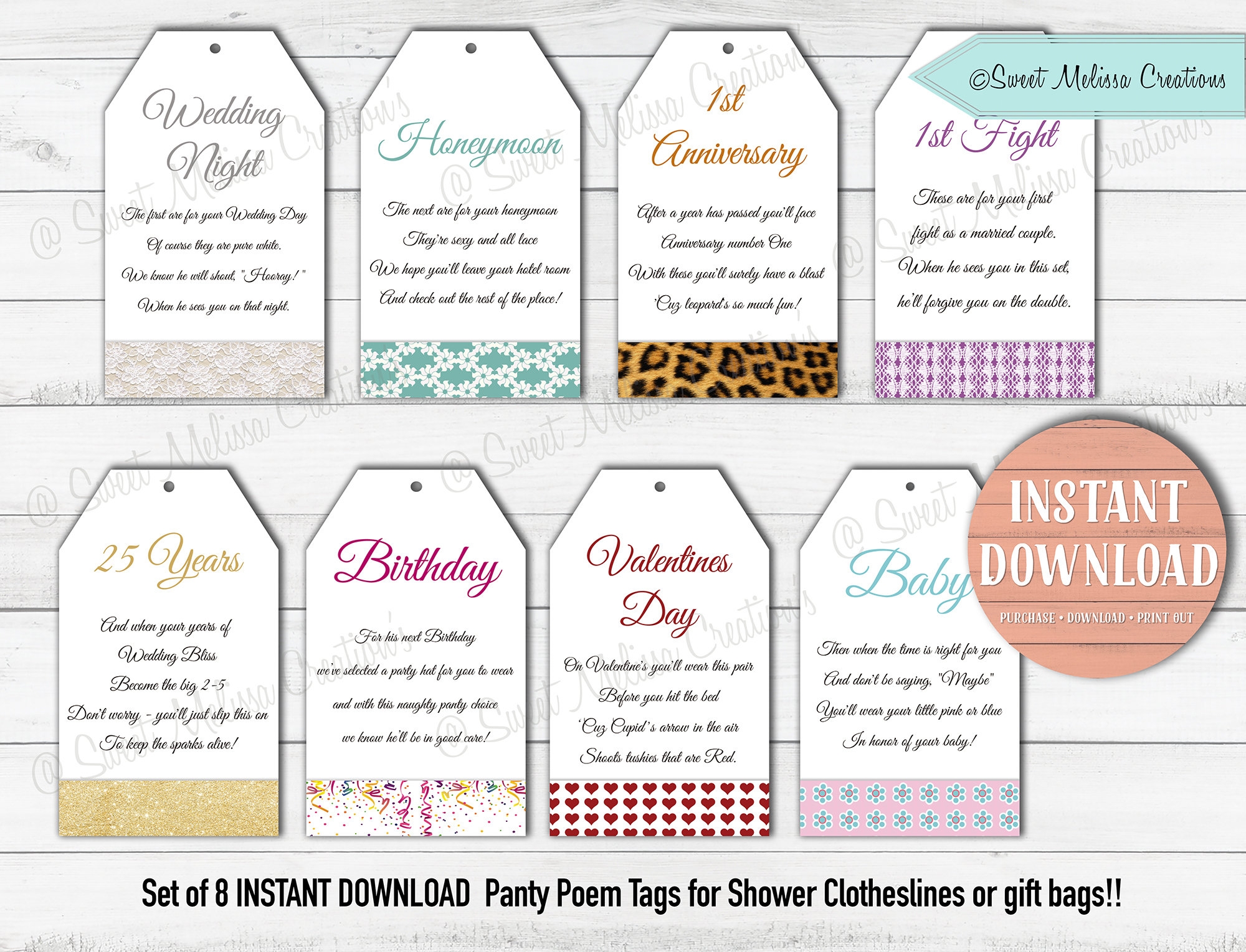 INSTANT DOWNLOAD Panty Line Poem Cards print At Home DIY sweet Melissa Creations Etsy
