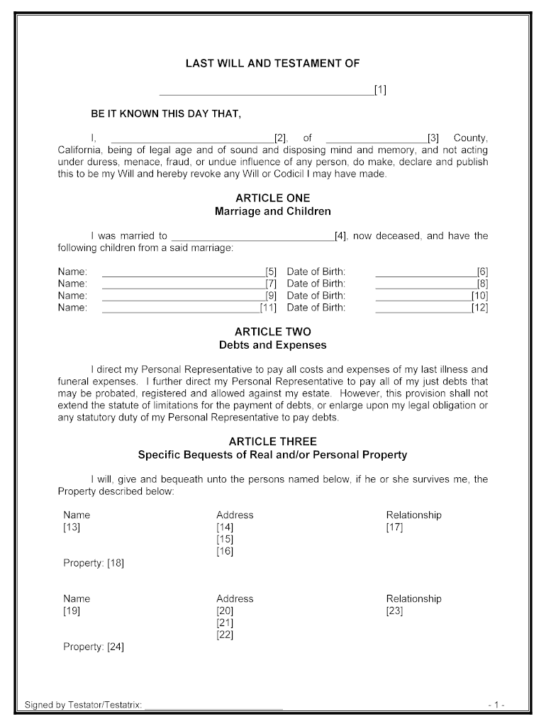 California Last Will And Testament Templates Free Word PDF ODT