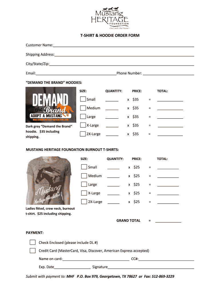 Hoodie Order Form Template Fill Online Printable Fillable Blank PdfFiller