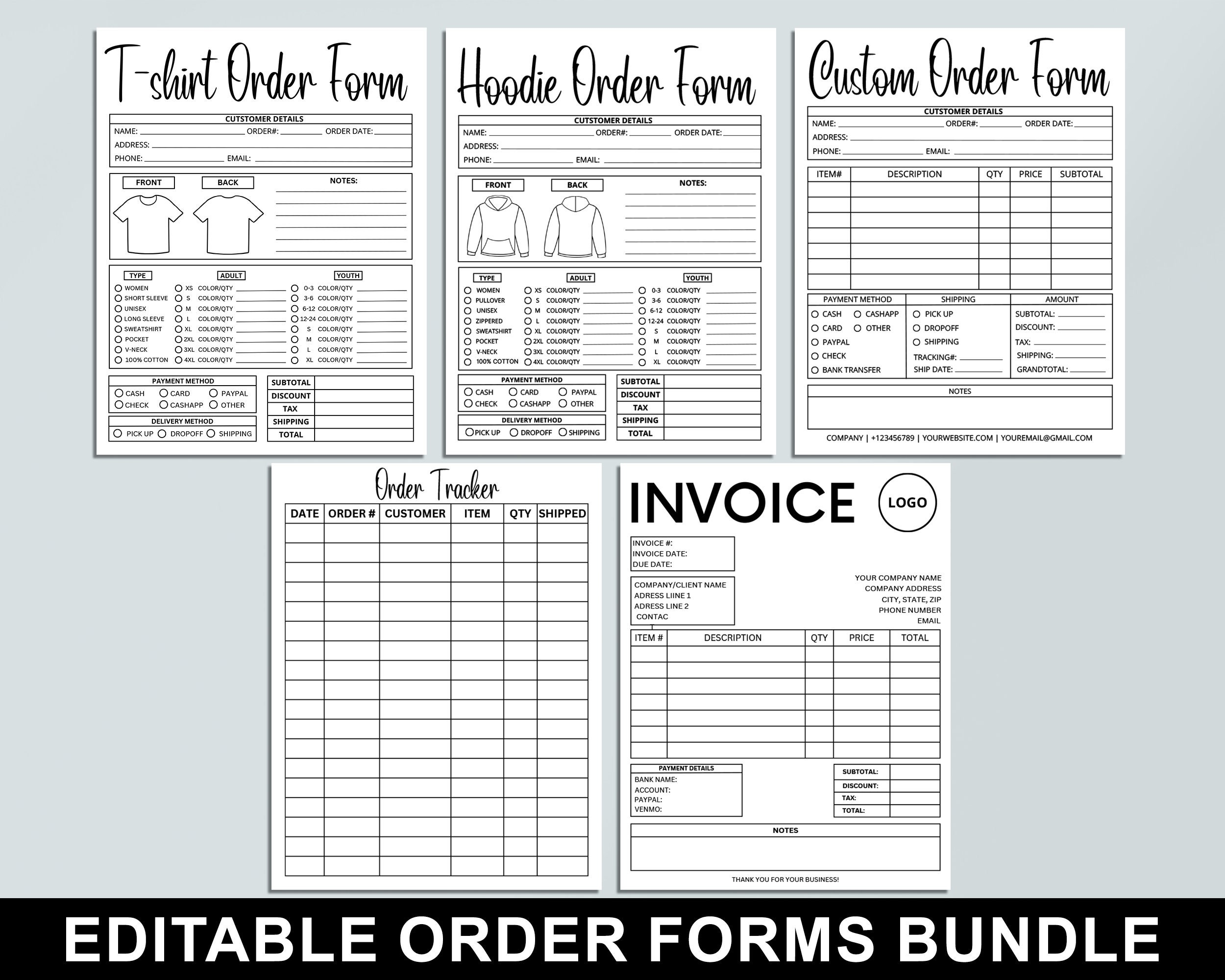 Fillable Hoodie Order Form Editable Printable Shirt Order Form Editable Small Business Order Forms PDF Business Printables PDF 001 Etsy