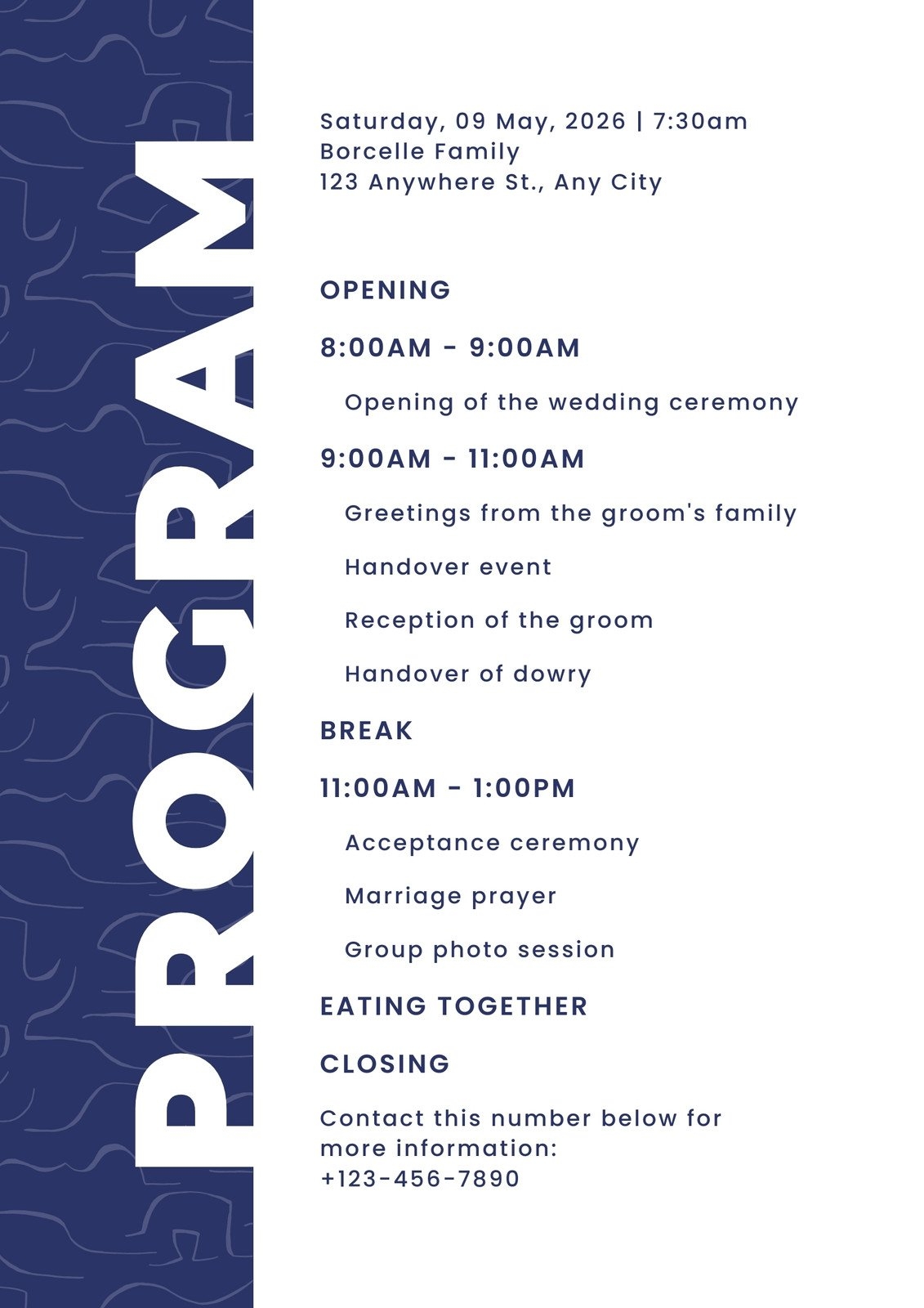 Get started now and make your event planning process a breeze with our free printable event program template. Your stress-free event is just a download away!