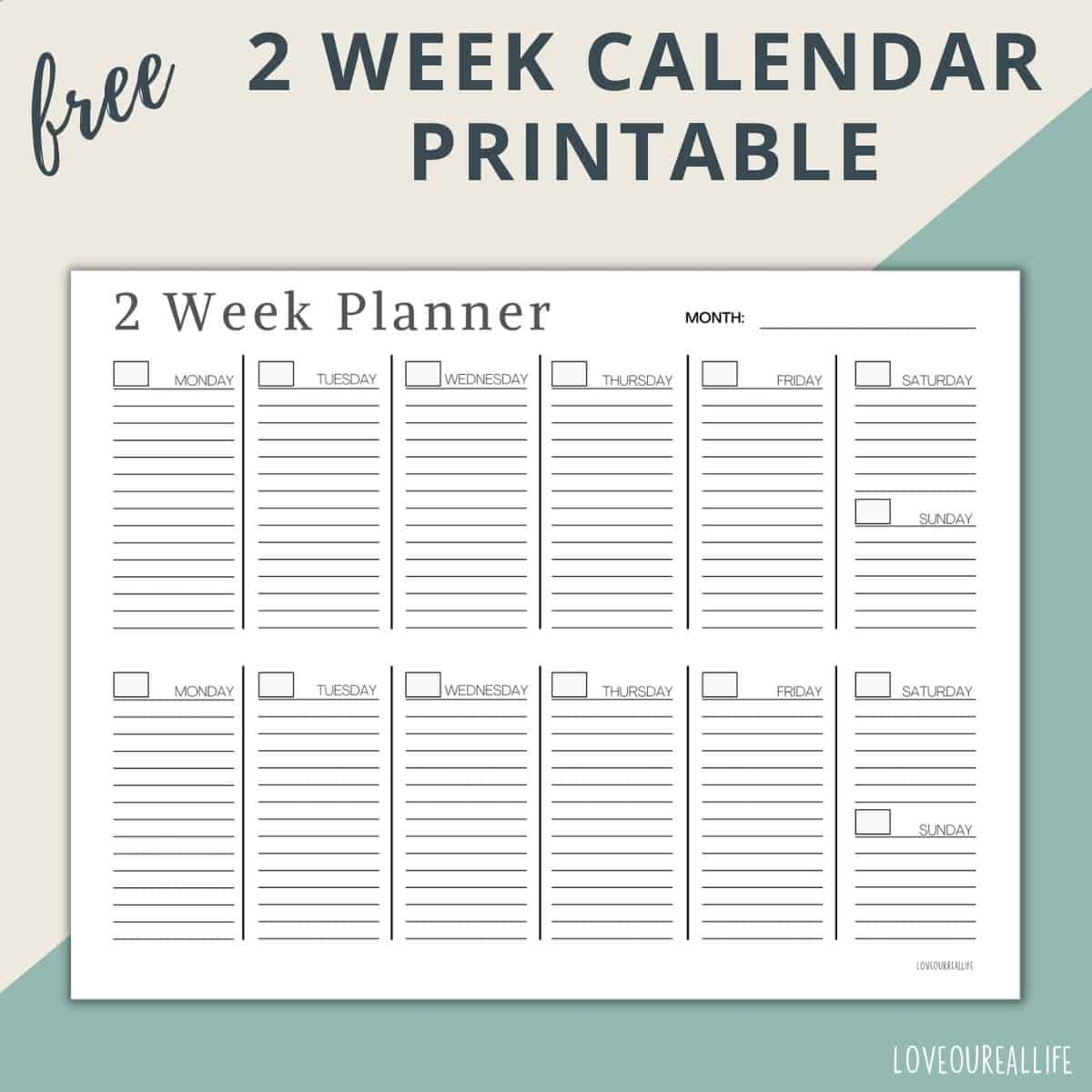 Two Week Calendar Template Free Printable Weekly Planner Love Our Real Life