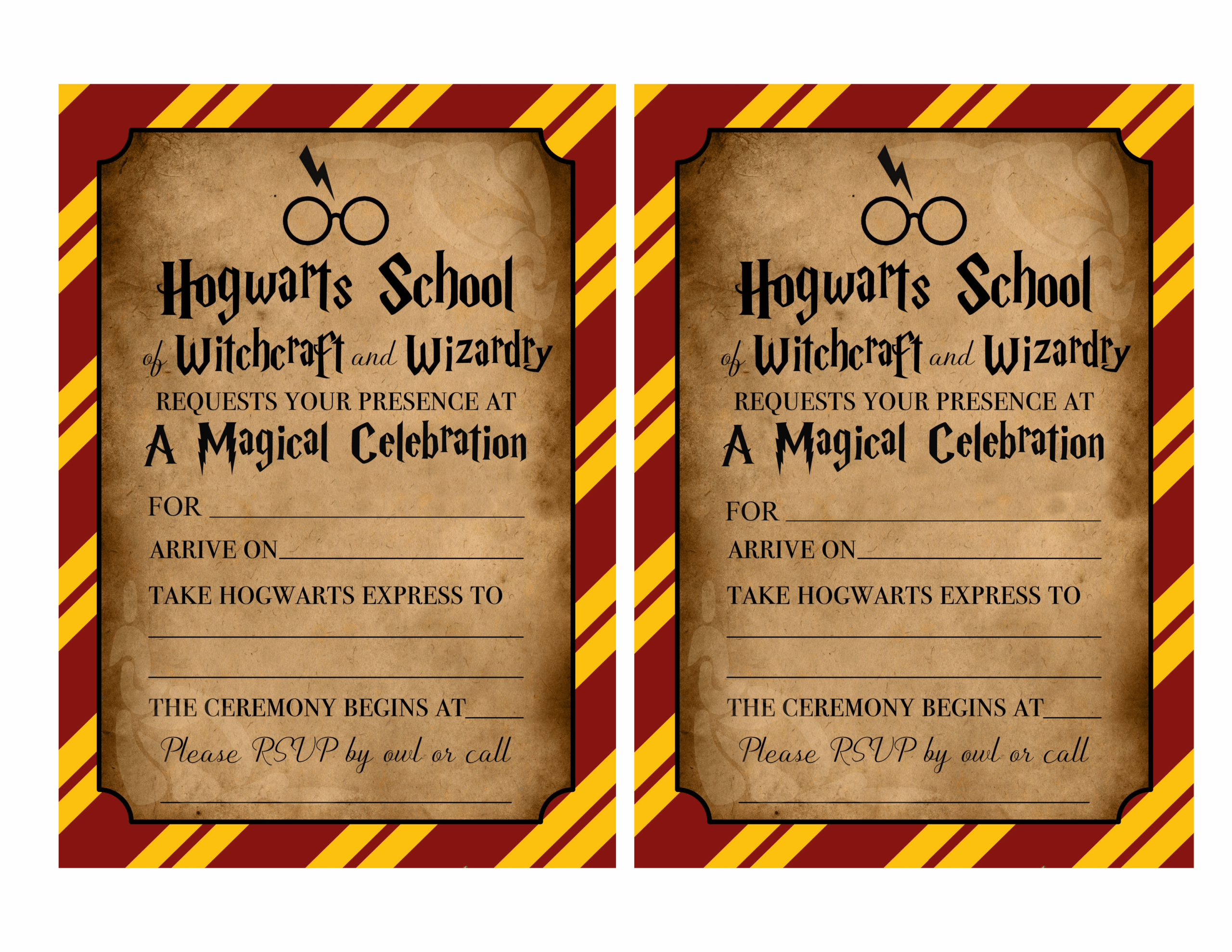 Get ready to host an unforgettable Harry Potter party with these template-free printable invitations that will transport your guests to the world of Hogwarts and wizardry. Let your creativity shine and make your event truly enchanting with these magical invitations.